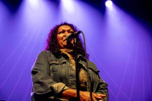 Opening for Butler is the always radiant Emma Donovan, dressed casually in a dress and denim jacket. Accompanied by only her guitarist, Emma sings a beautiful rendition of Auntie Ruby’s ” Yarian Mititji” a soulful track that silences the audience. Before leaving the stage she pays respect to Uncle Archie with a rendition of ” Wash My Soul In The River’s Flow”, a jazz version of the timeless classic.